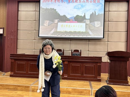在重庆歌乐山烈士陵园里,一位白发老者手捧菊花,前来祭奠。故事就顺着老者的追忆娓娓道来。江姐狱中喜绣红旗、先辈被捕宁死不屈、胜利钟声震彻监狱等一幕幕让红岩精神在观众心里有了具象。幕布缓缓落下,“我应该在烈火和热血中得到永生”的声音回荡大厅,久久不息。