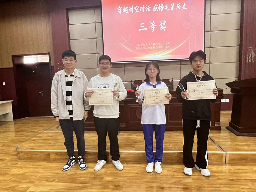 “少年似晨阳,驱散长夜,燃亮世界。”话剧节的精彩纷呈不禁让我们感叹同学们精湛的演技,让我们沉浸于跌宕起伏的剧情。在本次话剧节活动中,观众跟随表演者们的演绎去追忆、去感悟先辈历史,去思考吾辈青年之重任,走出课本、走进历史。