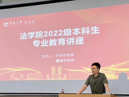 许庆永老师和曹瀚予老师为同学们带来了一场精彩的专业教育讲座。此次讲座旨在为大家深入剖析法学专业的发展前景,传授有效的学习方法以及分享两位老师的学习经验,同时也为同学们解答在专业学习中所遇到的疑惑。本次讲座由22级辅导员白嘉宁老师主持。