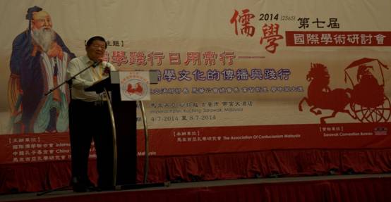 第七届(2014)国际儒学学术研讨会,于7月4日在马来西亚沙拉越州古晋市隆重开幕。大会由国际儒学联合会、中华孔子基金会和马来西亚孔学研究会联合主办,马来西亚孔学研究会承办。大会开幕典礼,由马来西亚交通部长、马华公会总长那督斯里·廖中莱大德致开幕词,并鸣锣剪彩开幕。来自世界各地的专家、学者约120人出席了本次大会,研讨主题是:儒学践行日用常行——当代儒学文化传播与践行。马来西亚孔学研究会常务顾问赖观福博士做开幕主题报告,”以一个周圆的华夏思想体系向世界再述一遍”。引起与会学者的热烈关注。